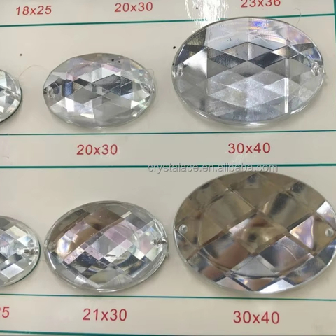 Taiwan Acrylique Coudre sur Pierre 30X40mm Forme Ovale Acrylique Dos Plat Strass, Acrylique Coudre sur Pierres 50 Pcs Emballage